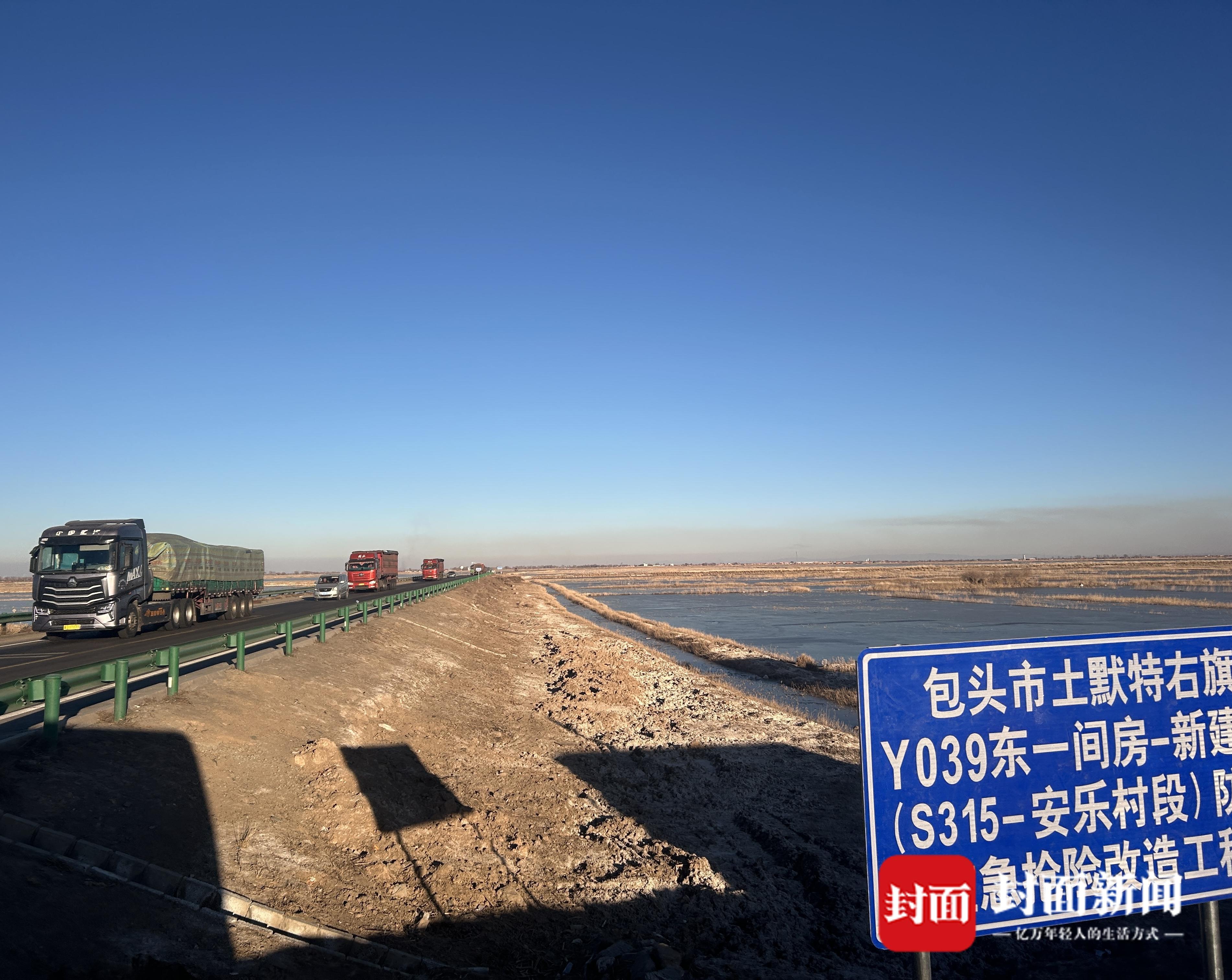内蒙古包头市土默特右旗矗立的防洪应急抢险改造工程标牌。封面新闻记者卢荡摄影