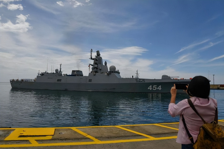 与此同时,俄罗斯派出几艘军舰靠岸中国湛江,这种行动在近年还是少见。