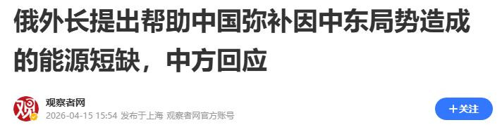 俄外长提出帮助中国弥补因中东局势造成的能源短缺,中方回应——2026-04-15·观察者网
